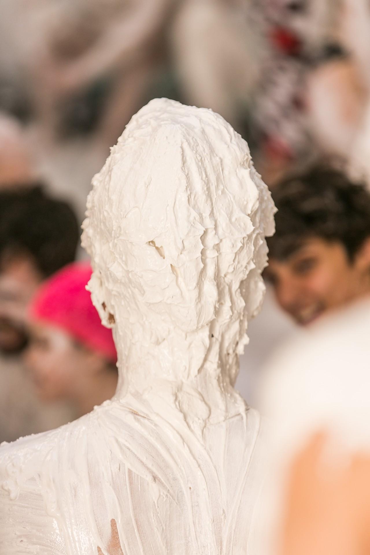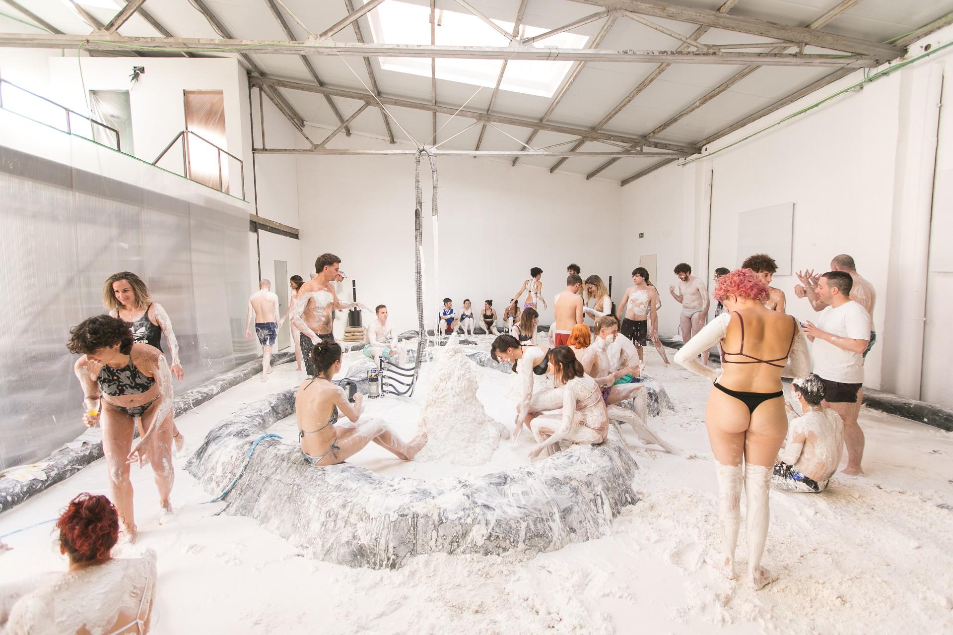 Spa Profundo transfers this operative landscape to the city centre, a pool of mud designed to create an evening of social and bodily interaction while exploring the viscous dimension of the extractive industry. The bodies become blurred in the residue, and in the territory. The toxicity and stink form part of a collective hedonism that offers new material vibrations, odours, sensations and textures that allow us to enjoy the experience of plunging through the residue. A protocol of contamination and decontamination that enables us to feel the subsoil through our skin.